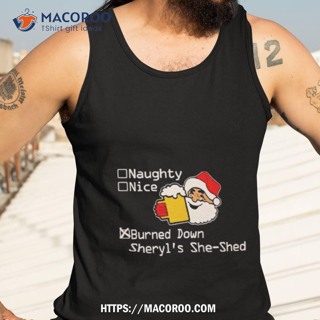 Naughty Nice Burned Down Sheryl’s She Shed Shirt