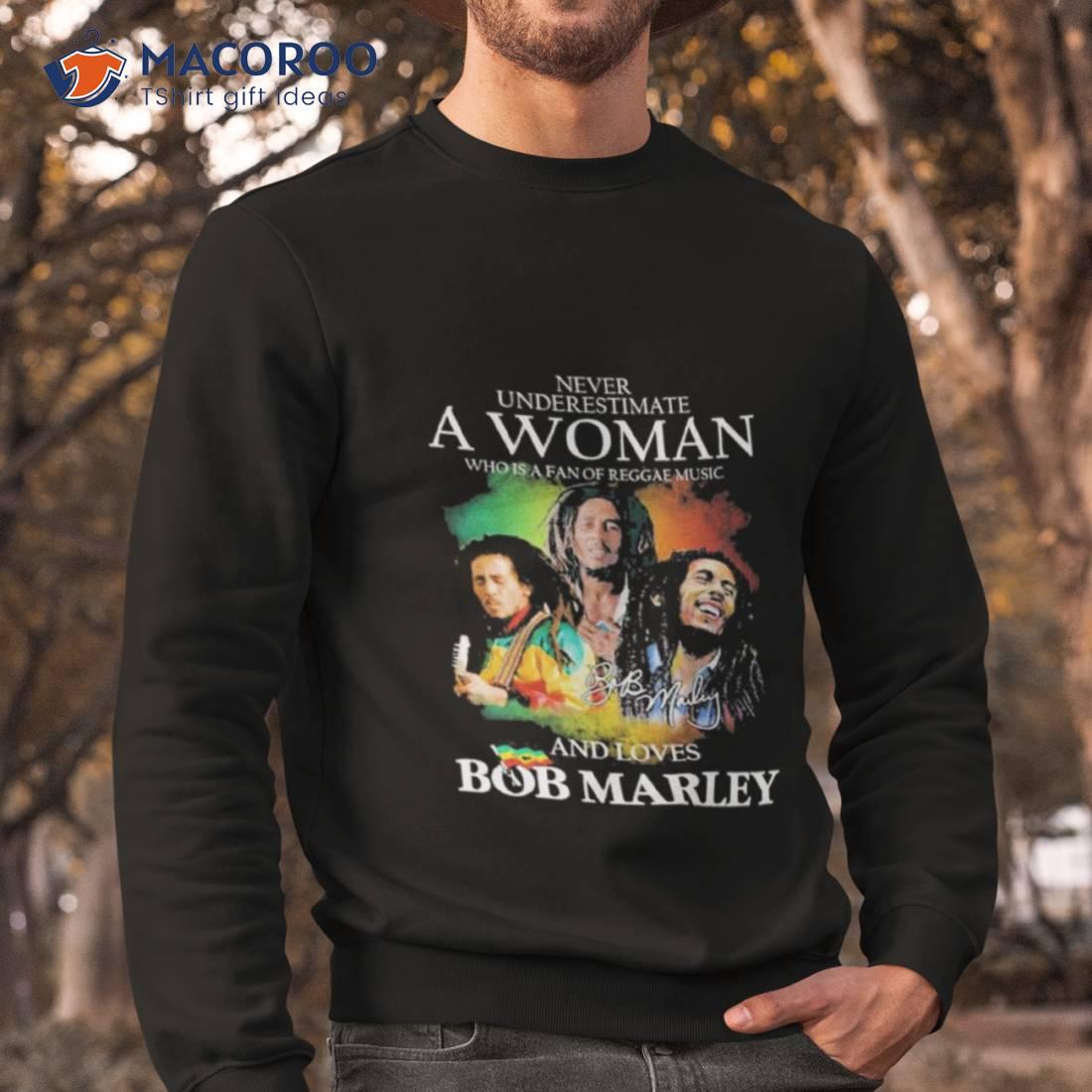 Never Underestimate A Woman Who Is A Fan Of Reggae Music And Loves Bob Marley Shirt