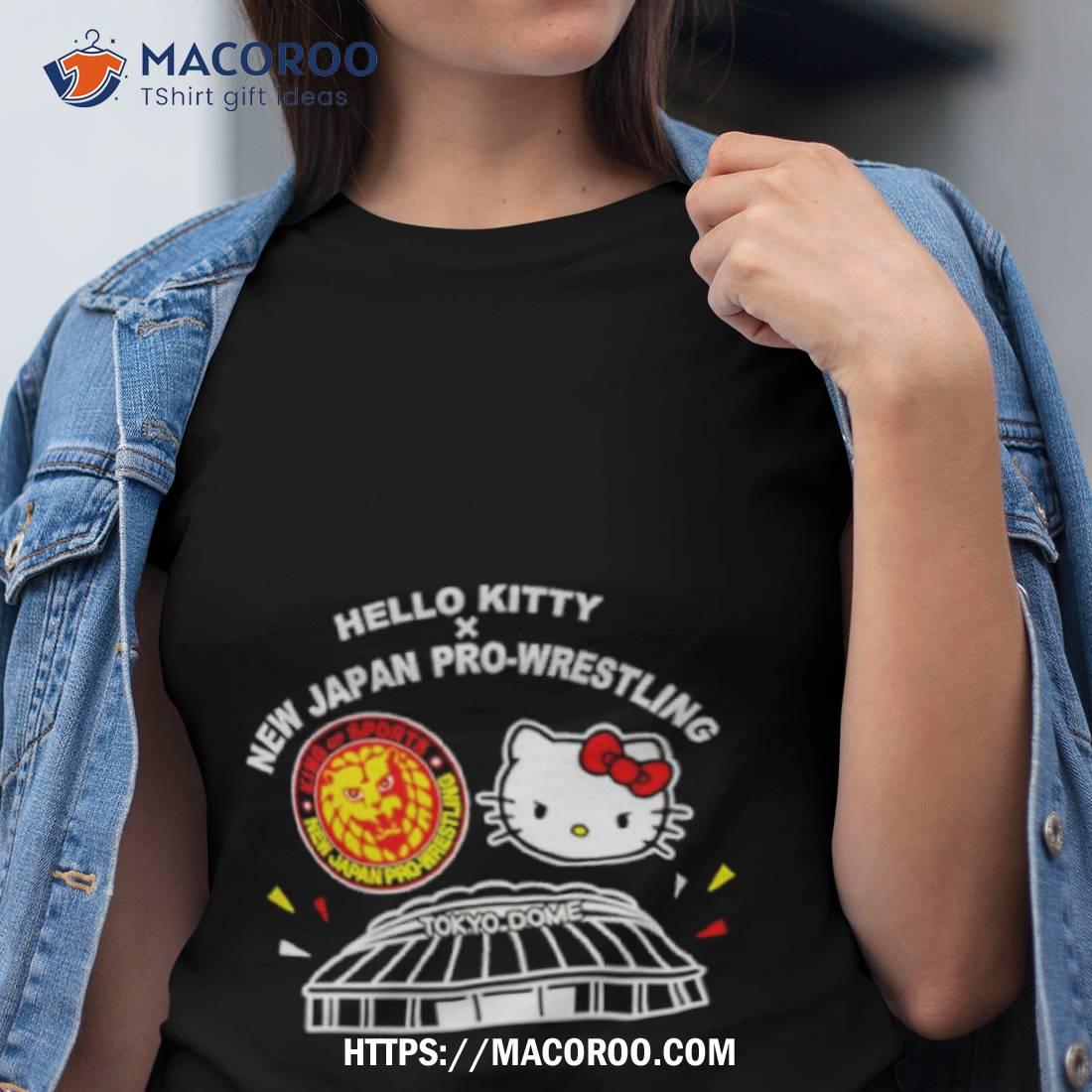 Fun and cute NJPW X Hello Kitty Tokyo Dome shirt. Perfect for any fan of wrestling or Hello Kitty!