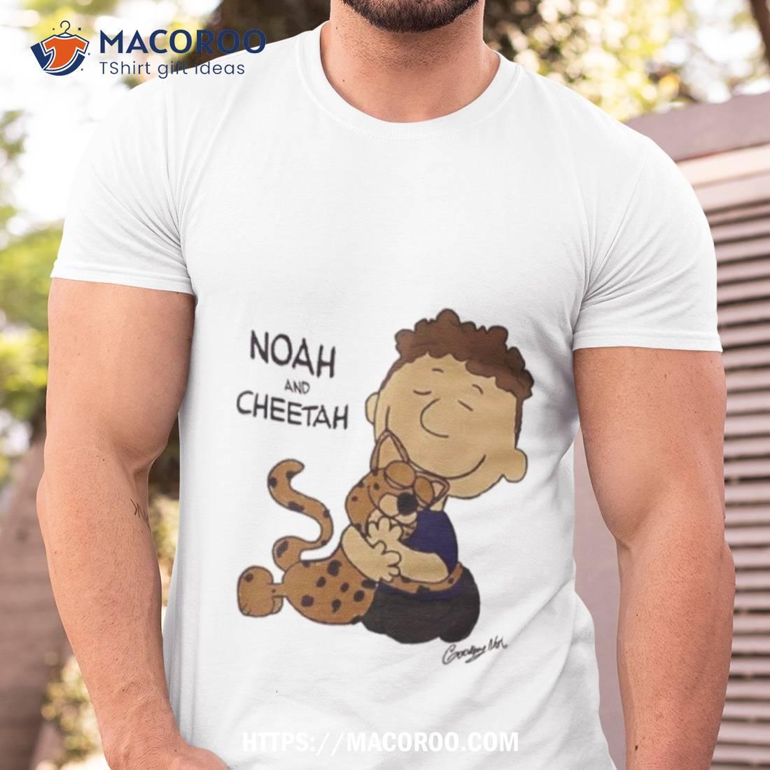 This shirt is perfect for animal lovers. It features a sweet friendship between Noah and his cheetah. A must-have for any wardrobe!
