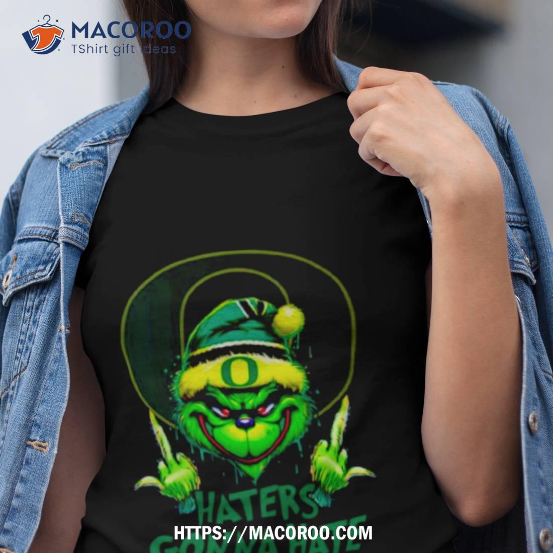This shirt is perfect for any Oregon Ducks fan! The Grinch Santa design with the middle finger is a great way to show your team spirit and tell haters to back off.
