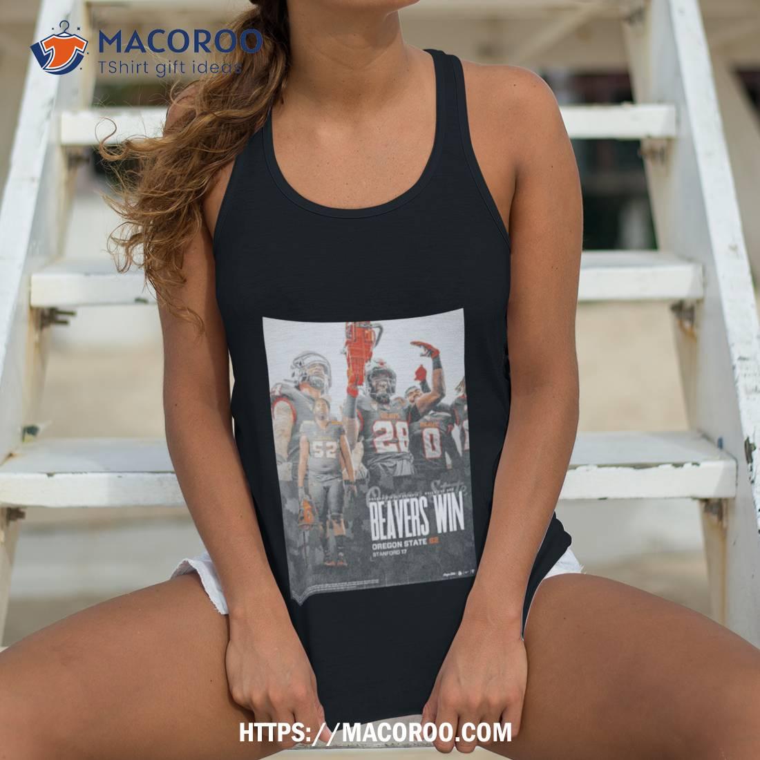 The Oregon State Beavers won in an impressive 62-17 victory over the Stanford Cardinal. Great shirt to commemorate the win!