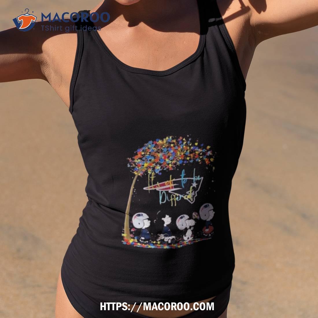 This shirt is a great way to show support for those with autism, the New England Patriots, and Peanuts characters. It’s a unique design that celebrates being different and encourages acceptance. A must-have for any fan!