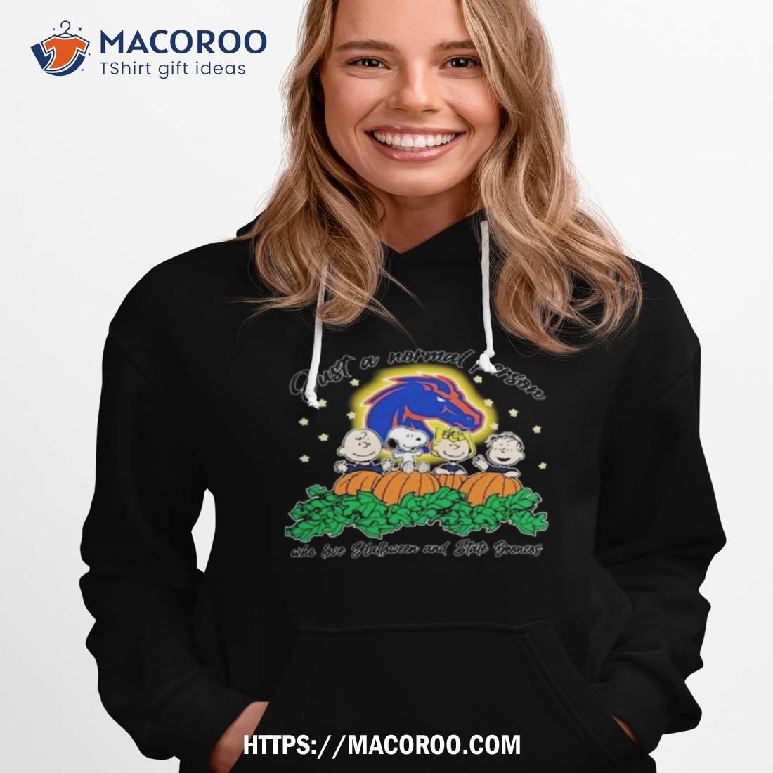 Peanuts Just A Normal Person Who Love Halloween And Boise State Broncos Logo 2023 Shirt