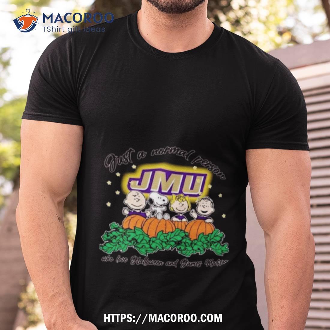 Peanuts Just A Normal Person Who Love Halloween And James Madison Duckes Logo 2023 Shirt