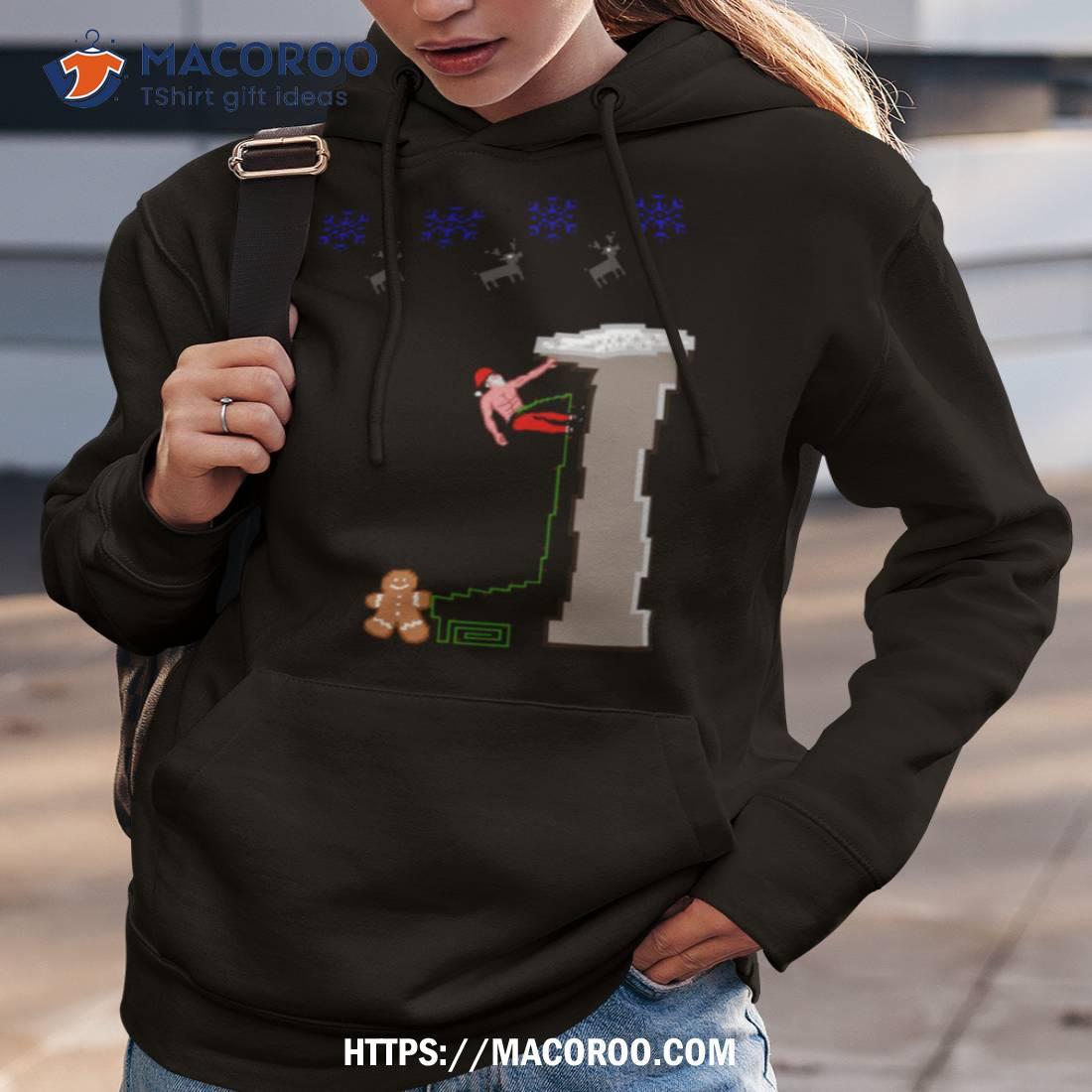Pixel Santa Climbing Christmas Rock Climbing Shirt