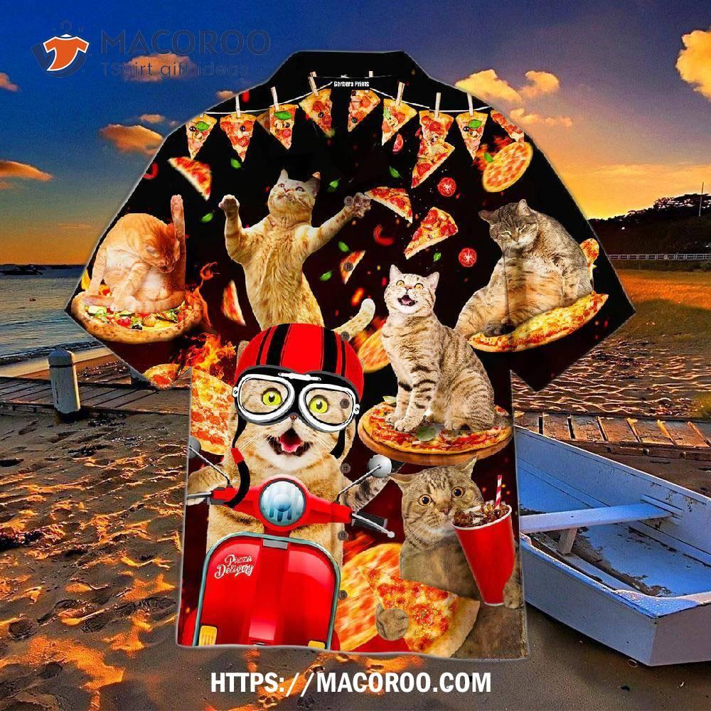 Fun and colorful Hawaiian shirt featuring Pizza Cats. Perfect for any pizza lover!