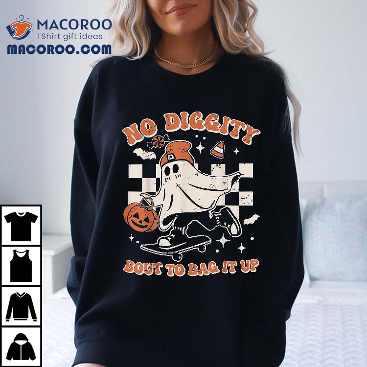 Retro Halloween Ghost No Diggity Bout To Bag It Up Shirt