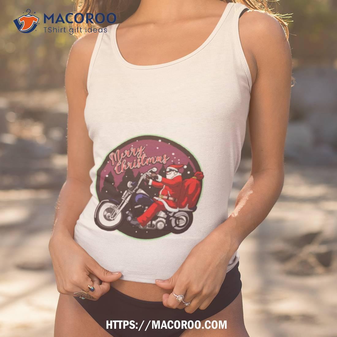 Fun Santa Claus On Motorcycle Merry Christmas Shirt for the holiday season! Great quality and design.