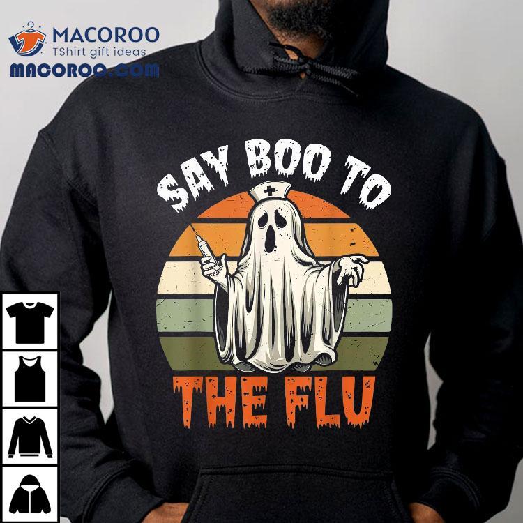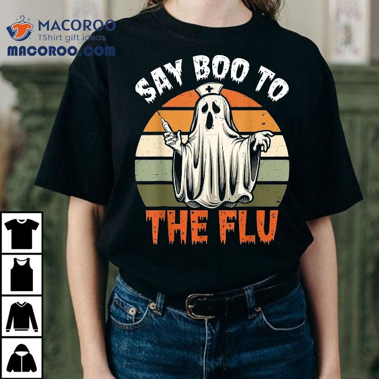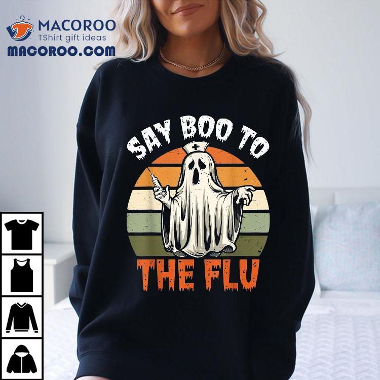Say Boo To The Flu Ghost Nurse Humor Halloween Costume Shirt