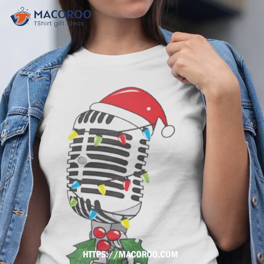 Great shirt! Perfect for the singer or mic enthusiast. Fun Christmas tree design.