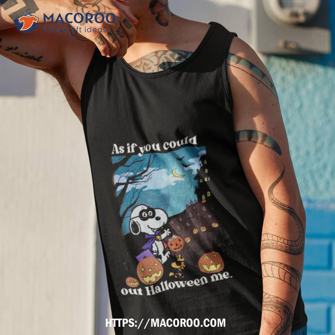 Fun Halloween shirt with classic Peanuts characters. Perfect for any fan!