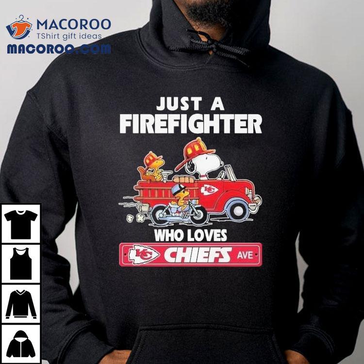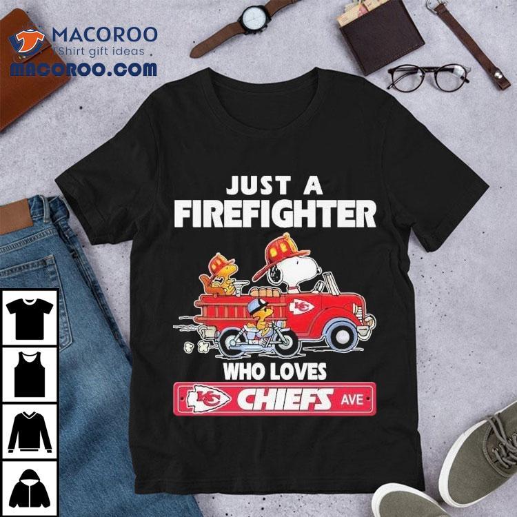 Snoopy And Woodstock Driving Car Motor Just A Firefighter Who Love Kansas City Chiefs Shirt