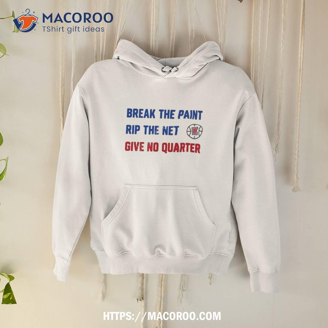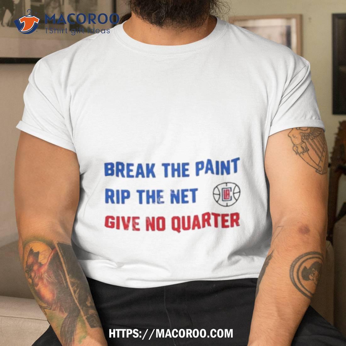 Great shirt! Tomer Azarly’s Break The Paint Rip The Net Give No Quarter Shirt is perfect for any basketball fan.