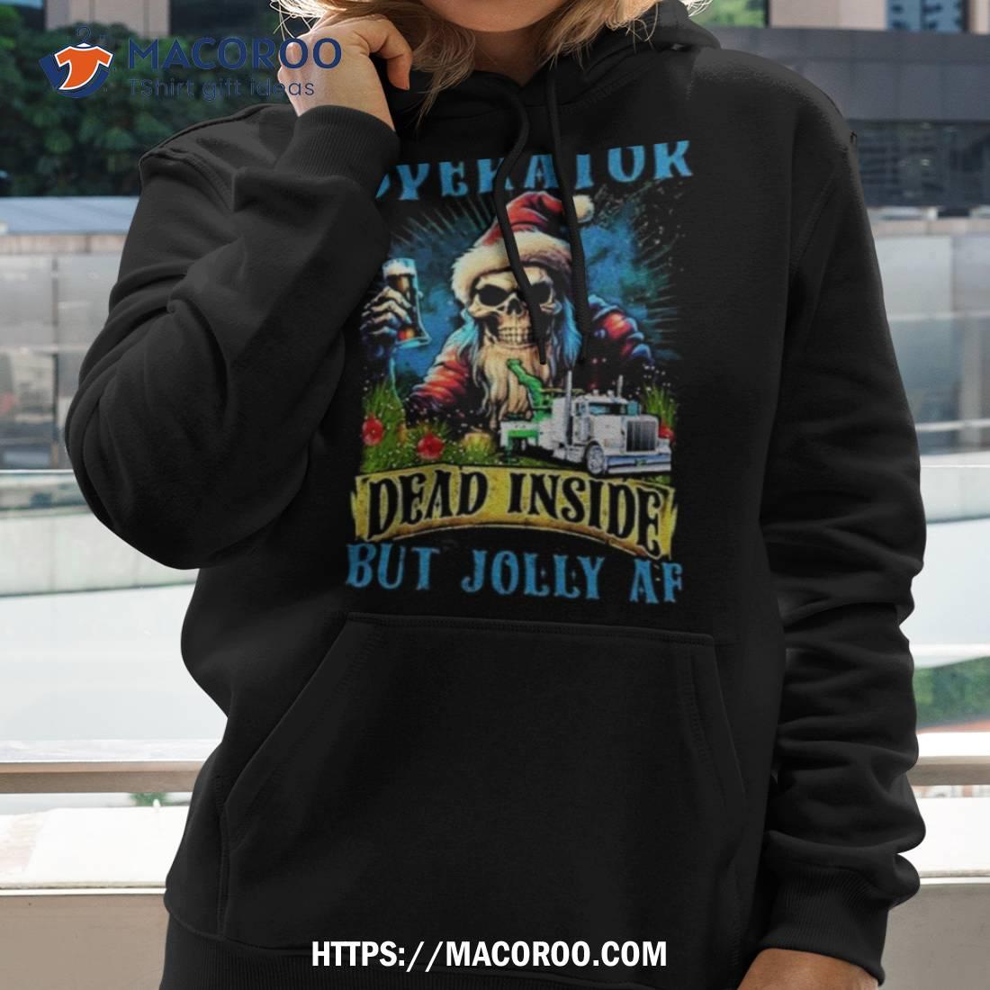 This festive t-shirt is perfect for the holiday season. It features a skeleton Santa in a tow truck and reads “Dead Inside But Jolly AF”. A great gift for Christmas 2023!