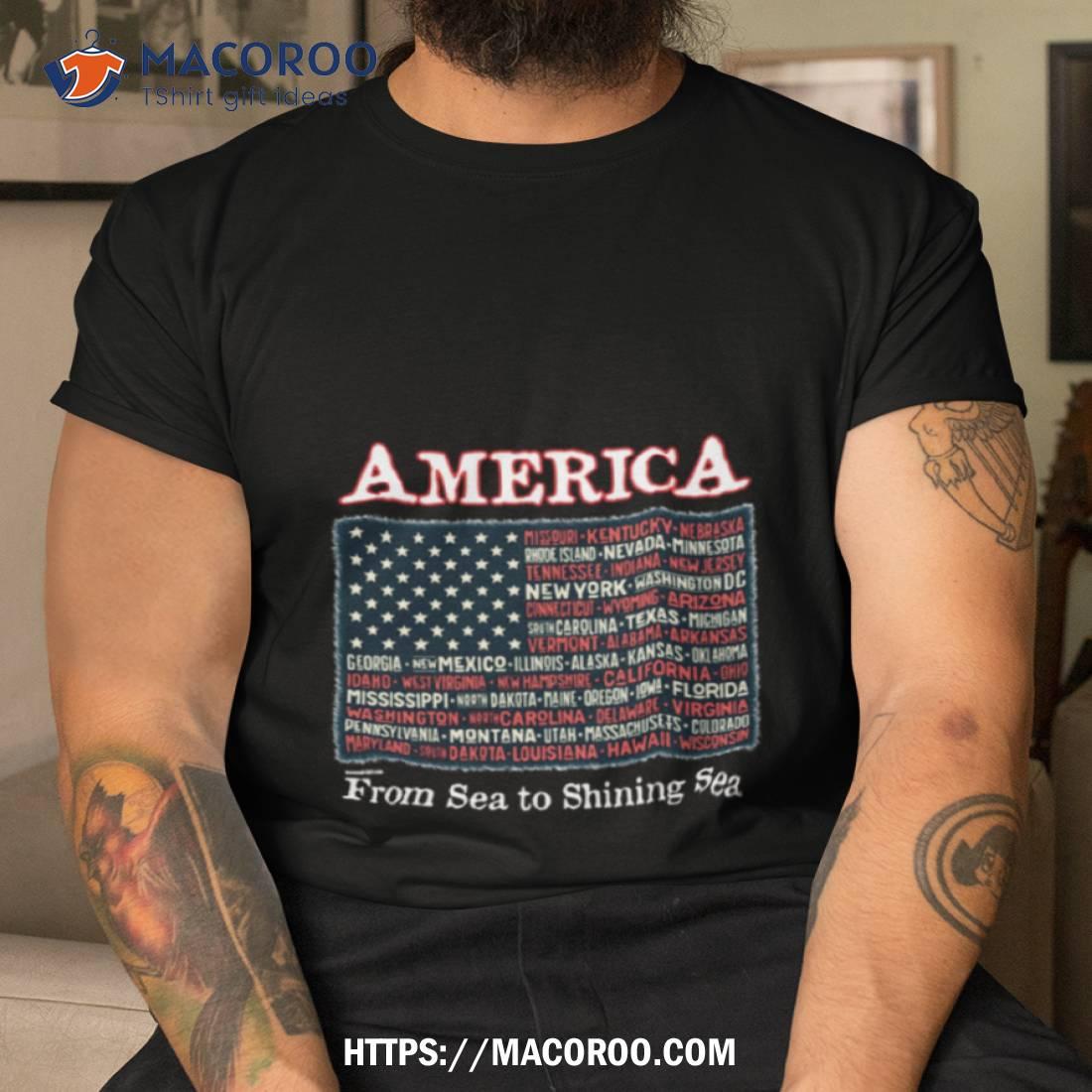 This arshirt is a great way to show your American pride! The design features the names of all 50 US states as part of the American flag. A must-have for any patriot!