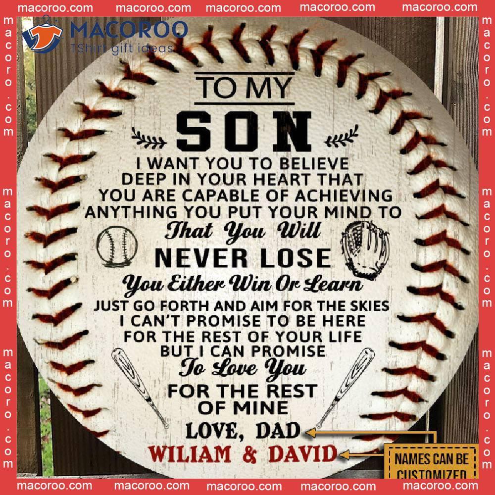 My dad is the most special person in my life. He has been there for me since day one and I feel so grateful to have him as my father. He always knows how to make me smile and show me how much he loves me. One of the best gift he has ever given me was a handmade guitar on my 16th birthday. It was so thoughtful, and showed me how much he cares for me. I still treasure it to this day, and it stands as a reminder of his deep connection to my heart. dad is truly the best!Wall Hanging Sign,Custom Baseball,Round Wooden Sign,Name Gift,To My Son,From Dad,Son Gift
