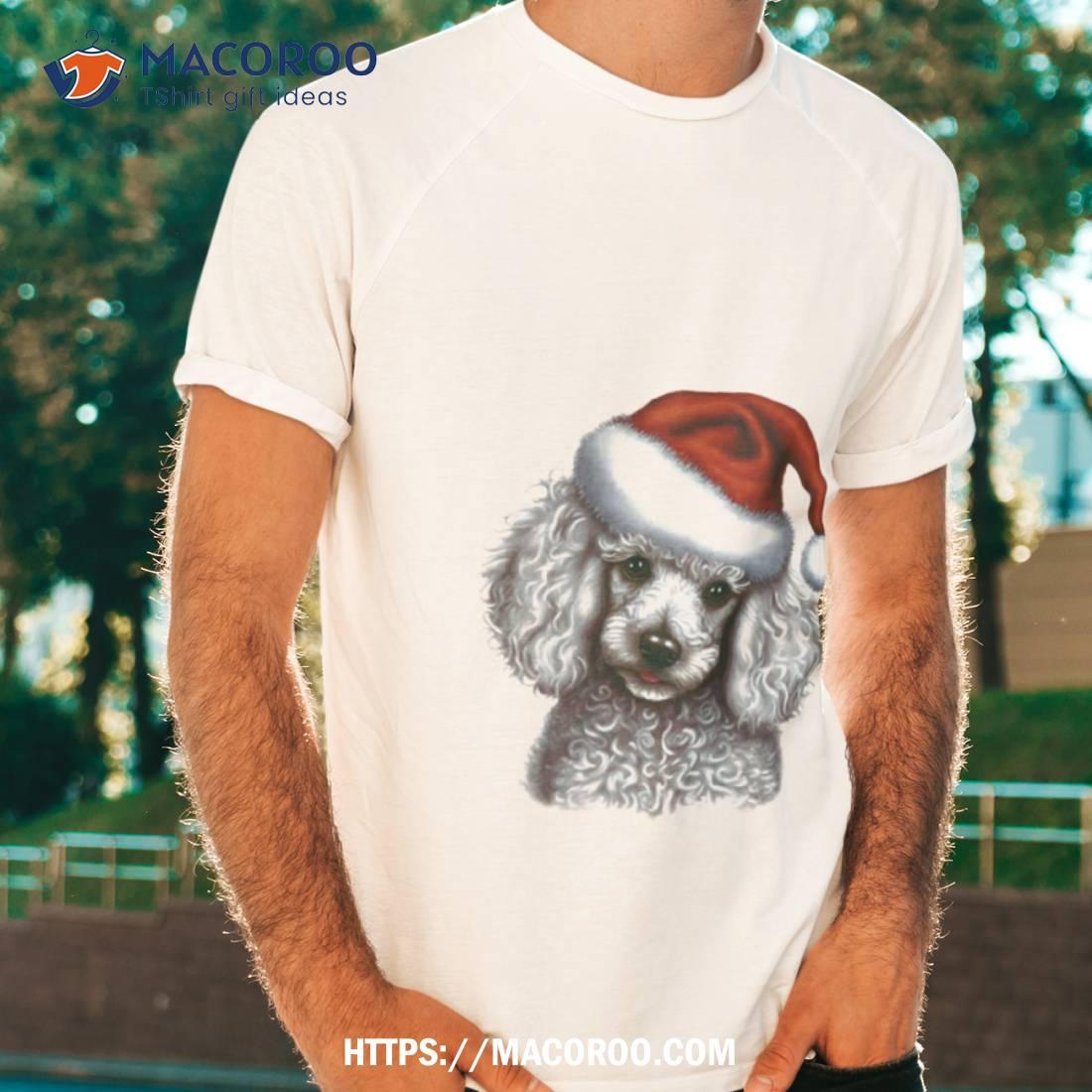 This cute Christmas shirt is perfect for any pup! The white toy poodle design is adorable.