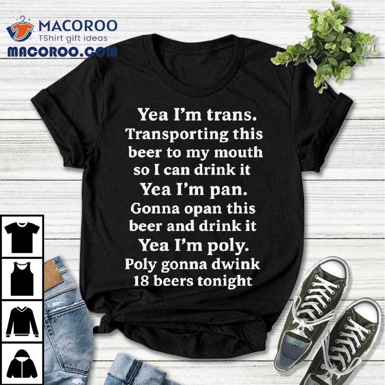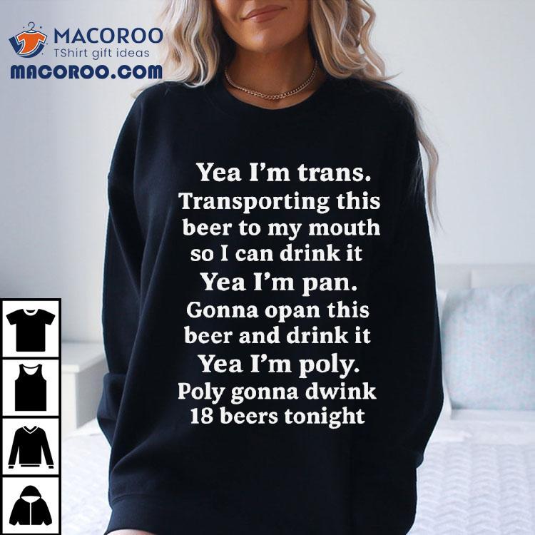 Yeah I’m Trans. Transporting This Beer To My Mouth So I Can Drink It Yea I’m Pan Gonna Opan This Beer And Drink It Yea I’m Poly Poly Gonna Dwink 18 Beers Tonight Shirt