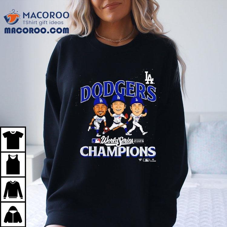 Yoshinobu Yamamoto Shohei Ohtani And Mookie Betts Los Angeles Dodgers 2025 World Series Champions Appeal Play Shirt